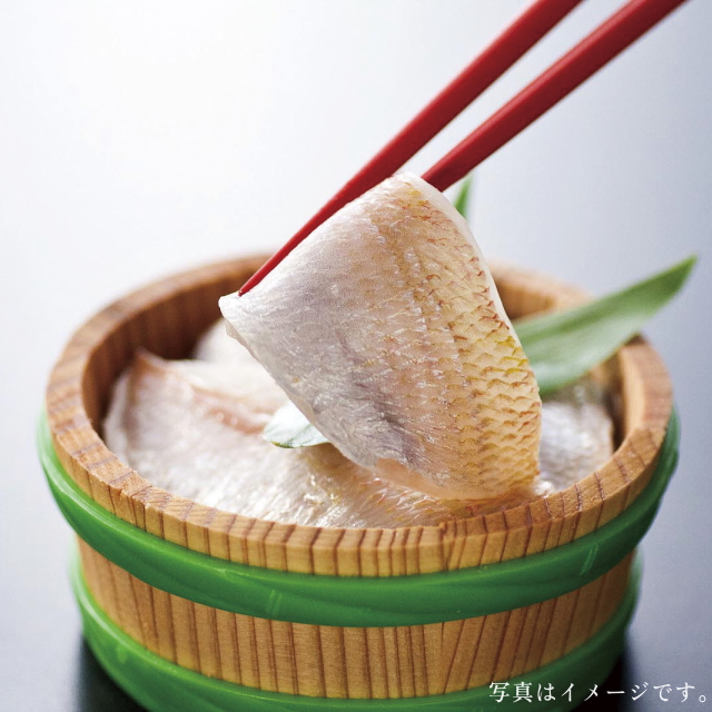 | 福井県名産品の一つ。日本海近海でとれた連呼鯛を三枚におろし、赤穂の天然塩・伝統三百年の米酢を使い、手造りで仕上げました。 そのまま、又はお好みで、わさび醤油やしょうが醤油でも美味しくお召し上がり頂けます。 |