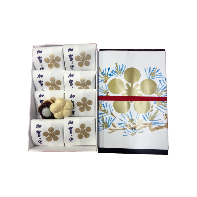 【期間限定】この時期にしか作らないため、めったに食べることができない加賀の銘菓です。加賀百万石の伝統迎春菓子「福梅」。甘さを抑えた上品な餡をもなかで包みました。藩主前田家の家紋「剣梅鉢」を意匠にした格式のある和菓子です。