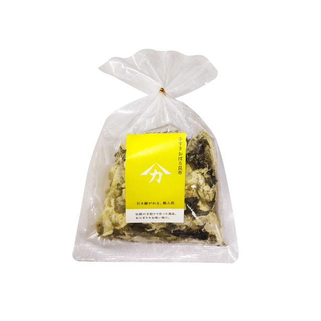 おぼろ昆布とは、酢につけて柔らかくした昆布を職人が丁寧に削ったものです。透き通るような均一な厚みに削られるおぼろ昆布は、熟練した職人技が必要とされます。職人が心を込めてかきあげた逸品です。