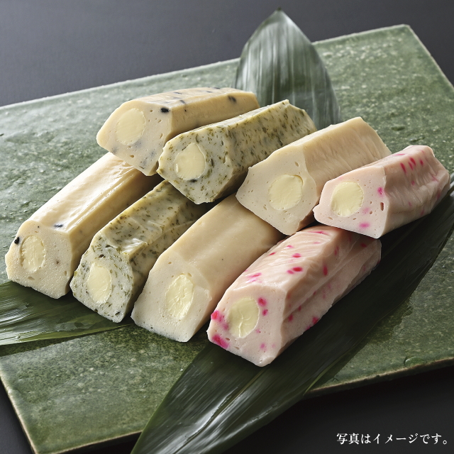 | プレーン、ごま、青のり、紅しょうがの4種のかまぼこの中にクリーミーなチーズを入れた大人気の商品です。かまぼことチーズの相性は抜群です。そのままでも、揚げてもおいしくお召し上がりいただけます。 |