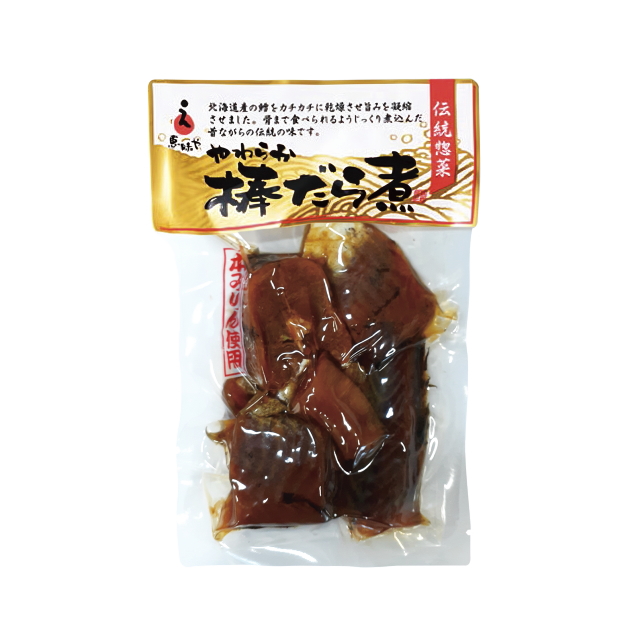 | 北海道産の鱈をカチカチに乾燥し、旨みを凝縮しました。骨や皮までまるごと食べられるようじっくり煮込んだ、昔ながらの伝統の味です。 |