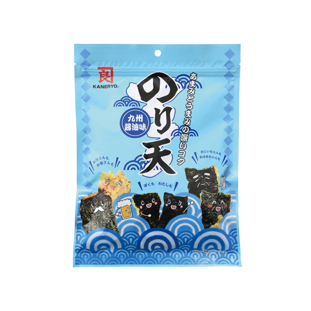 | 国産の海苔原料を使用し、深いコクと甘みが特徴の九州醤油で味付けをした、サクサクののり天です。 |